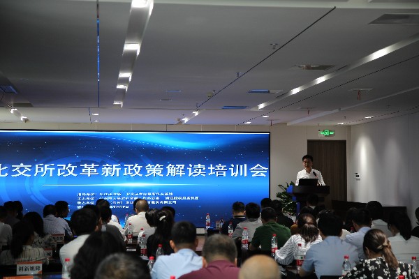 9月19日上午,北交所改革新政策解讀培訓(xùn)活動(dòng)在金投資本廣場(chǎng)舉行。本次活動(dòng)由臺(tái)州市金融辦主辦,浙股集團(tuán)臺(tái)州公司、市金投集團(tuán)承辦,浙江證監(jiān)局、北交所華東基地指導(dǎo)。市金融辦黨組書(shū)記、主任胡新民,省證監(jiān)局副處長(zhǎng)胡亦盛,北交所華東區(qū)域副首席代表魏士鈞,各縣(市、區(qū))金融工作中心、臺(tái)州灣新區(qū)財(cái)政金融局主要負(fù)責(zé)人及多家雙創(chuàng)苗圃擬上市企業(yè)主要負(fù)責(zé)人、證券機(jī)構(gòu)負(fù)責(zé)人等參加本次培訓(xùn)。