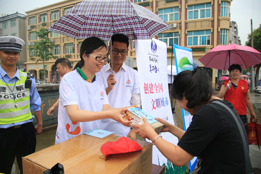 7月3日,由督導(dǎo)服務(wù)組成員以及黨員志愿者們組成的宣傳小分隊著裝整齊,走上街頭,擺攤設(shè)點,進行“多城同創(chuàng)、美麗臺州”為主題的宣傳活動。暴雨的天氣,沒有阻擋宣傳小分隊的熱情,隊員們通過張貼海報、發(fā)放宣傳資料、現(xiàn)場講解等方式,吸引了廣大群眾參與活動,進一步提高了群眾文明創(chuàng)建意識,受到了群眾的好評,宣傳效果明顯。