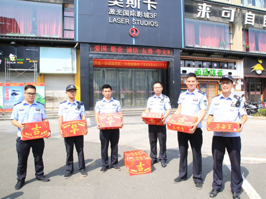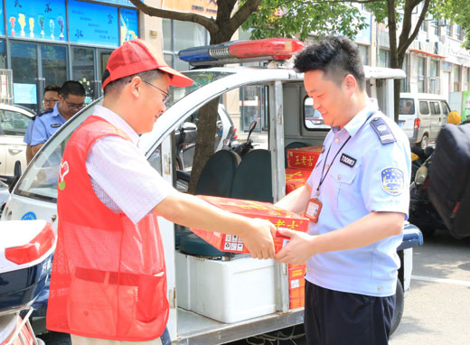 大家趕緊為辛苦執(zhí)勤的隊(duì)員們送上消暑解渴的王老吉。
