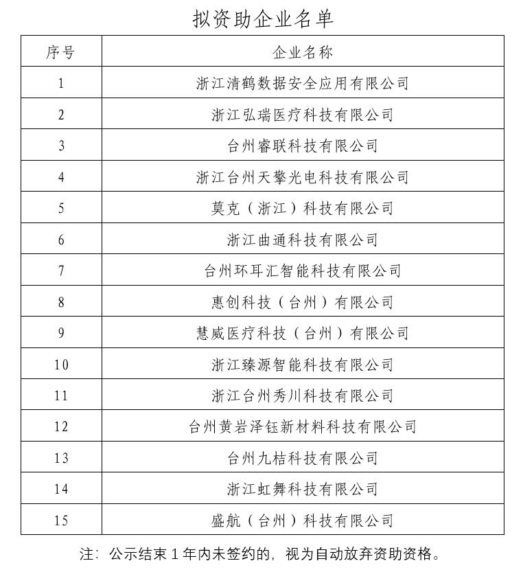 根據(jù)《臺州市科創(chuàng)基金支持人才創(chuàng)業(yè)實施辦法》(臺人才領(lǐng)〔2023〕44號)的規(guī)定,經(jīng)天使夢想基金管理委員會審議,臺州市天使夢想基金擬對15家人才創(chuàng)業(yè)項目進(jìn)行資助,現(xiàn)將名單予以公示。如有意見,可向市科創(chuàng)集團(tuán)反映。