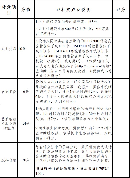 綜合比選。評分標準見下表:
