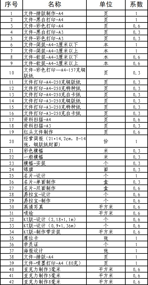 1.采購內(nèi)容:選擇一家文印服務(wù)商簽訂服務(wù)協(xié)議,原則上服務(wù)期限不超過2年,每年續(xù)簽一次,若出現(xiàn)服務(wù)不到位的情況,公司有權(quán)重新采購或終止服務(wù)。文印服務(wù)包括但不限于下列清單。