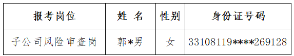 2020年8月10日,集團(tuán)發(fā)布了《臺州市金融投資集團(tuán)有限公司公開招聘筆試公告》,公布筆試人員名單。因工作疏忽遺漏了一名符合報(bào)考條件人員,現(xiàn)補(bǔ)充以下人員進(jìn)入筆試名單。